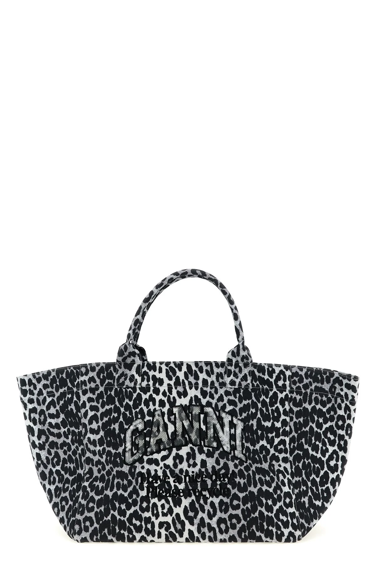 cod. B2110031018 'Leopard Sequin XXL Tote' canvas shopping bag with embroidery with front sequin application, double fixed handle. SUSTAINABLE: This product is made with recycled cotton. Color: Gray Size & Fit: W 65 x H 36 x D 19 cm Composition: 100% recycled cotton Made in: India