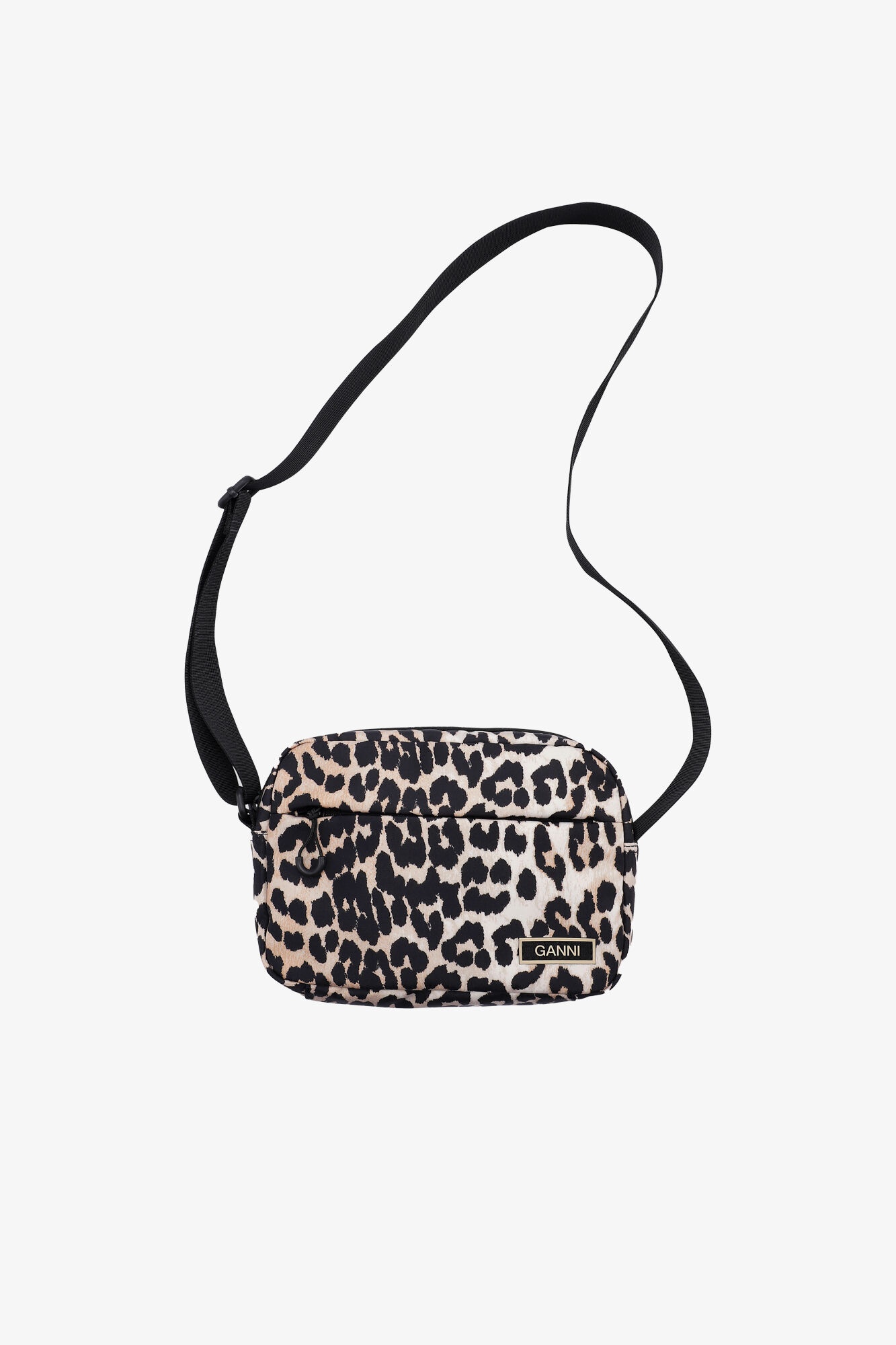 This Leopard Tech Festival Bag features a wide adjustable shoulder strap, side pocket, zip closure, leopard print and a rubber GANNI logo. DETAILS - 100% recycled polyester. Learn more about our materials - Lining composition: 100% Recycled Polyester - Wide adjustable shoulder strap - Side pocket - Zip closure - Leopard print - Rubber GANNI logo Made in: China Product ID: A5136 SIZE & FIT - Strap length: 35 - Height: 16.5 - Width: 23 - Depth: 7