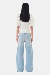 These Light Blue Andi Jeans are designed for a straight fit through the hip and thighs with wide, straight legs. They feature a 5-pocket style with belt loops and a zip/button closure and a GANNI logo at the back pocket. DETAILS - 98% organic cotton, 2% elastane. Learn more about our materials - 5 pocket style with a zip and button closure - GANNI Logo Made in: Turkey Product ID: J1470 SIZE & FIT - Straight fit - Mona is 5’9” and wears a size 27