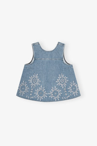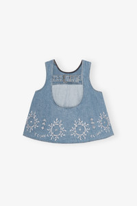 This Light Blue Broderie Anglaise Denim Top is a sleeveless top featuring embroidered detailing, a cut-out detail at the back and a buckle detail. DETAILS - 100% organic cotton. Learn more about our materials - Sleeveless - Cut-out detail at the back - Embroidered detailing - Buckle detail Made in: Tunisia Product ID: J1710 SIZE & FIT - Denise is 5’9” and wears a size US 4