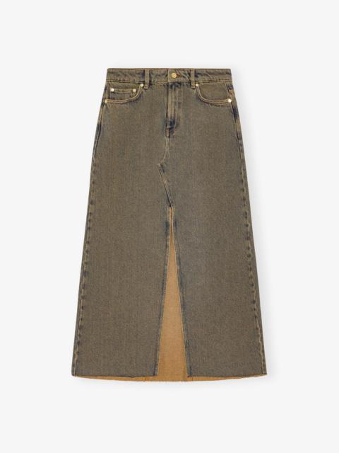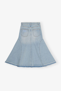 This Light Blue Denim Midi Skirt features a 5-pocket style with a zip and button closure, belt loops, and GANNI logo on the back pocket. DETAILS - 98% organic cotton, 2% elastane. Learn more about our materials - 5 pocket style with a zip and button closure - GANNI Logo Made in: Turkey Product ID: J1474 SIZE & FIT - Regular fit - Tatiana is 5’9” and wears a size US 4