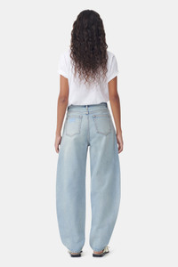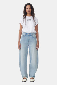 This style is part of the GANNI Denim Core Collection. These Light Blue Vintage Stary Jeans are made from organic cotton. The jeans are designed for a fitted look at the waist and a relaxed fit through the hips and thighs with a curved-leg silhouette. DETAILS - 100% organic cotton. Learn more about our materials - Light Blue Vintage - 5-pocket style with belt loops and a zip/button closure - GANNI logo at the back pocket Made in: Turkey Product ID: J1152 SIZE & FIT - Designed for a fitted look at the waist, relaxed through the hips and thighs - High-rise waist - Voluminous curved-leg silhouette - Fits true to size, take your normal size - Mediumweight, non-stretch rigid denim - Zoey is 5’10” and wears a size 27W / 34L