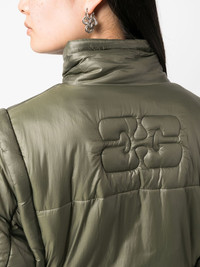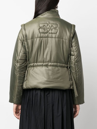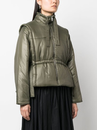 high-neck padded jacket Highlights - Olive green - Recycled polyamide/recycled polyester - Padded design - Quilted - Embroidered logo to the rear - Tonal stitching - Drawstring neck - High neck - Front zip fastening - Long sleeves - Drawstring waist - Side tie fastening - Straight hem Imported Composition Outer: Recycled Polyamide 100% Lining: Recycled Polyester 100% SIZE & FIT Model measurements Height 5 ft 10 in(1.78 m) Bust/Chest 30.7 in(78 cm) Hips 36.22 in(92 cm) Waist 25.59 in(65 cm) Washing instructions Dry Clean Only