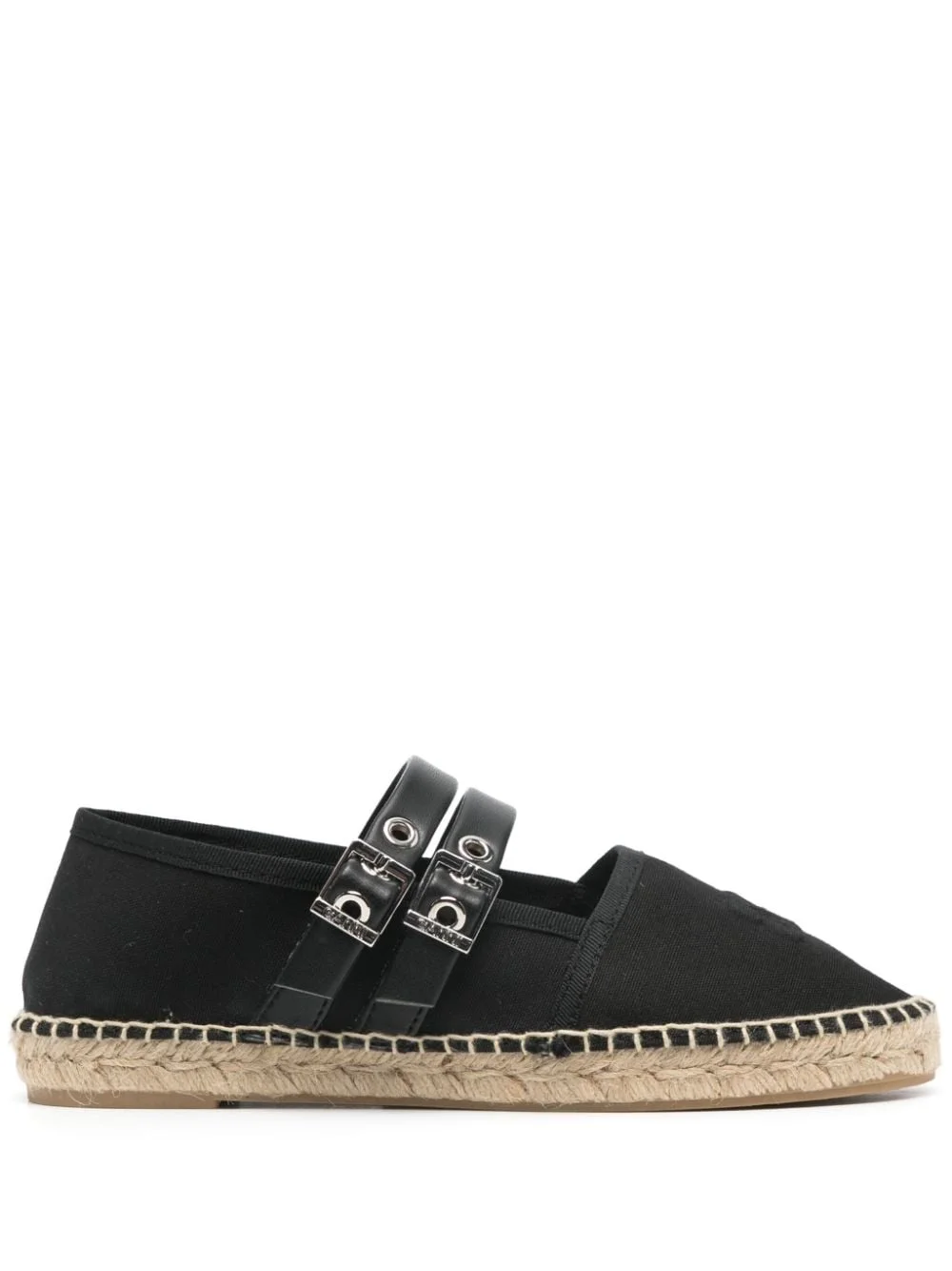 logo-embossed espadrilles Highlights - Black - Beige - Round toe - Embossed logo to the front - Branded insole - Leopard print lining - Braided raffia sole - Rubber outsole - Side buckle fastening Imported Composition Outer: Fabric 100% Lining: Fabric 100% Sole: Rubber 100% SIZE & FIT Measurement HEEL 0.78 in(2 cm) Sole height 0.78 in(2 cm)
