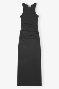 BLACK SOFT COTTON RIB TANK TOP LONG DRESS
