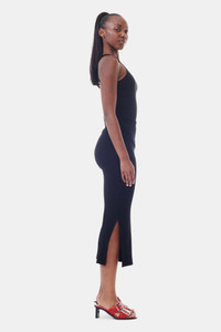 This Black Soft Cotton Rib Tank Top Long Dress features a round neckline and side slits. DETAILS - 95% organic cotton, 5% elastane. Learn more about our materials - Round neckline - Side slits Made in: Portugal Product ID: T3935 SIZE & FIT - Designed for a slim fit throughout, skimming the body without clinging - Fits true to size, take your normal size - Tatiana is 5’9” and wears a size S