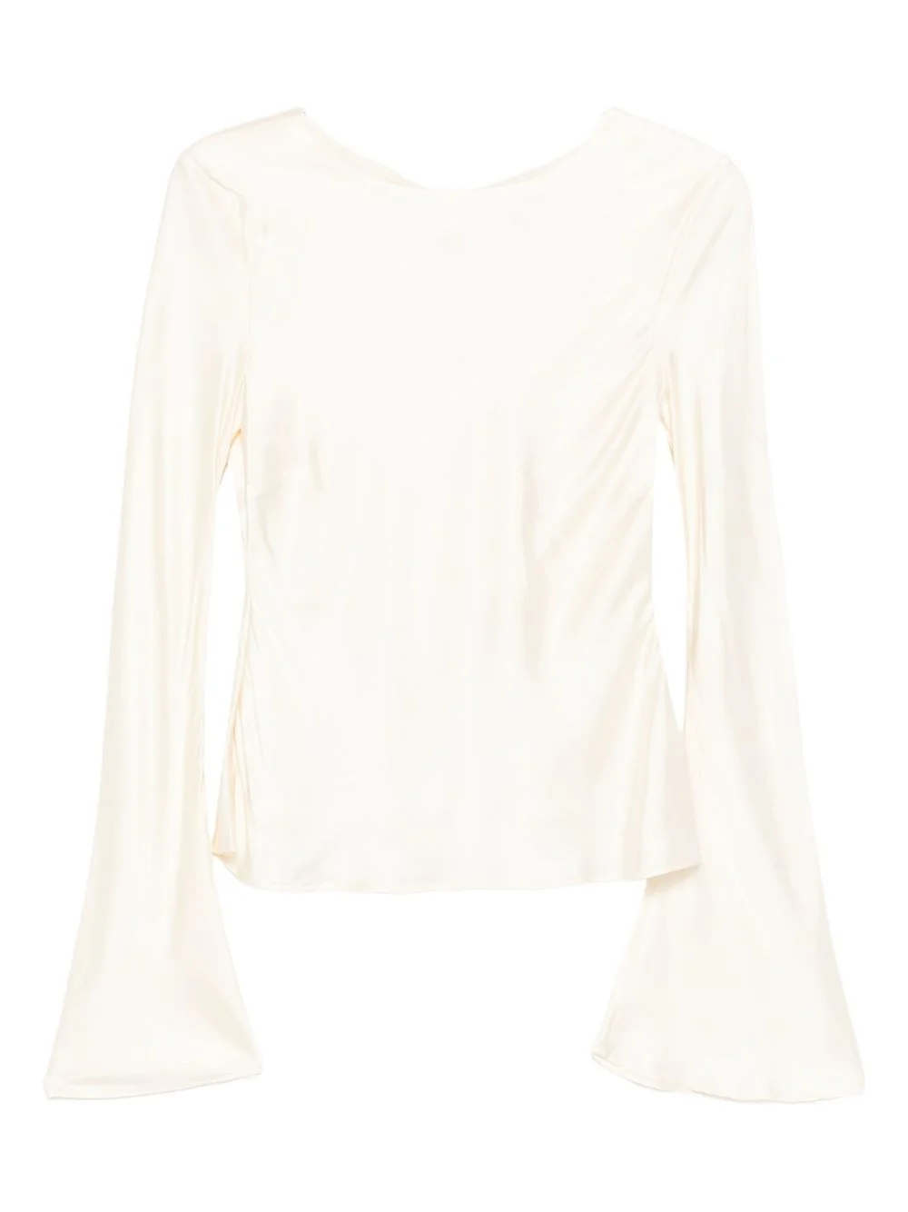 long sleeve blouse Highlights - White - Stretch satin - Long sleeves - Flared cuffs - Gathered detail Imported Composition Outer: Viscose 96%, Elastane 4% Lining: Polyester 97%, Elastane 3% Washing instructions Read Manufacturer Guidelines