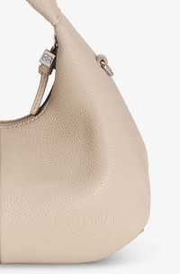 This bag features a top handle, adjustable and removable strap and a zipper closing. The bag has a mirror hangtag and an internal pocket. DETAILS - 52% recycled polyester, 48% polyurethane. Learn more about our materials - Lining composition: 85% Recycled Polyester 15% Polyester - Grained texture - Top handle - Adjustable and removable shoulder strap - Silver-tone GANNI Butterfly logo - GANNI embossed logo on the back of the bag - Zipper closing - Metallic dice with a GANNI and Butterfly logo engraved - Mirror hangtag - One compartment - Internal patch pocket Made in: China Product ID: A6978 SIZE & FIT - Shoulder strap: 60 cm - Height: 24.5 cm - Width: 24 cm - Depth: 12 cm - For personalised guidance on sizing and fit, contact our Customer Service team - here - .