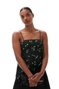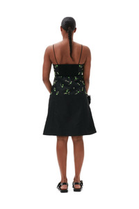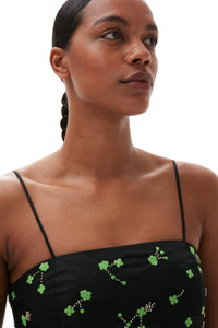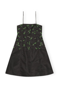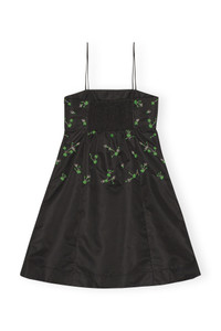 This Nylon Mini Dress is made from certified recycled nylon. The dress features a square neckline, spaghetti straps, zip closure, smocked back and beaded embroidery detailing. DETAILS - 100% recycled nylon - Square neckline - Spaghetti straps - Zip closure - Smocked back - Beaded embroidery detailing Made in: China Product ID: F7828 SIZE & FIT - Fitted across the chest - Fits true to size, take your normal size - Mediumweight, smooth stiff fabric