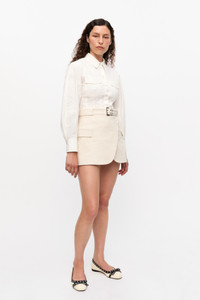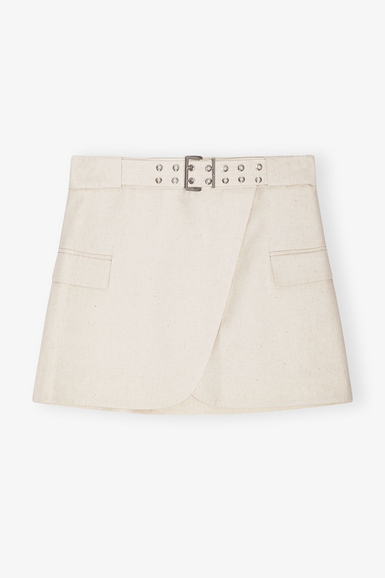 Revealed on the Spring/Summer 2025 runway This Off-White Cotton Melange Tailoring Mini Skirt features a matching belt with metal eyelets and two decorative side pockets. DETAILS - 70% organic cotton, 30% linen. Learn more about our materials - Lining composition: 100% cotton Made in: Turkey Product ID: W0230