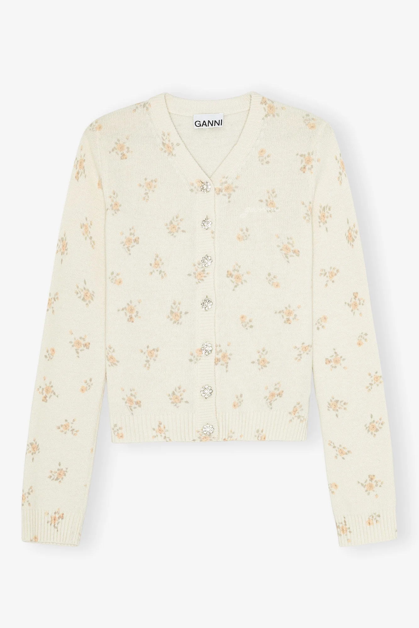 OFF-WHITE PRINTED WOOL MIX CARDIGAN