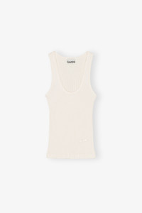 This top features a fitted silhouette, a scoop neckline, and an embroidered GANNI logo. DETAILS - 100% organic cotton. Learn more about our materials - Scoop neckline - Sleeveless design - Embroidered logo Made in: Portugal Product ID: T4266 SIZE & FIT - Slim fit - Kathia is 5’10” and wears a size S
