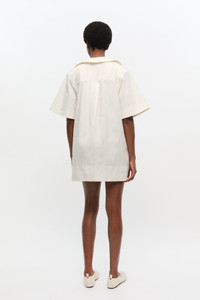 This dress features a deep v-neckline with three ties and a belted waist. The dress has short adjustable sleeves and two front pockets. DETAILS - 97% organic cotton, 3% elastane. Learn more about our materials - Short adjustable sleeves - Deep V-neck - Large collar - Two front pockets - Three tie bands - Belted waist Made in: India Product ID: W0881 SIZE & FIT - Regular fit - Mini length - Kathia is 5’10” and wears a size US 4