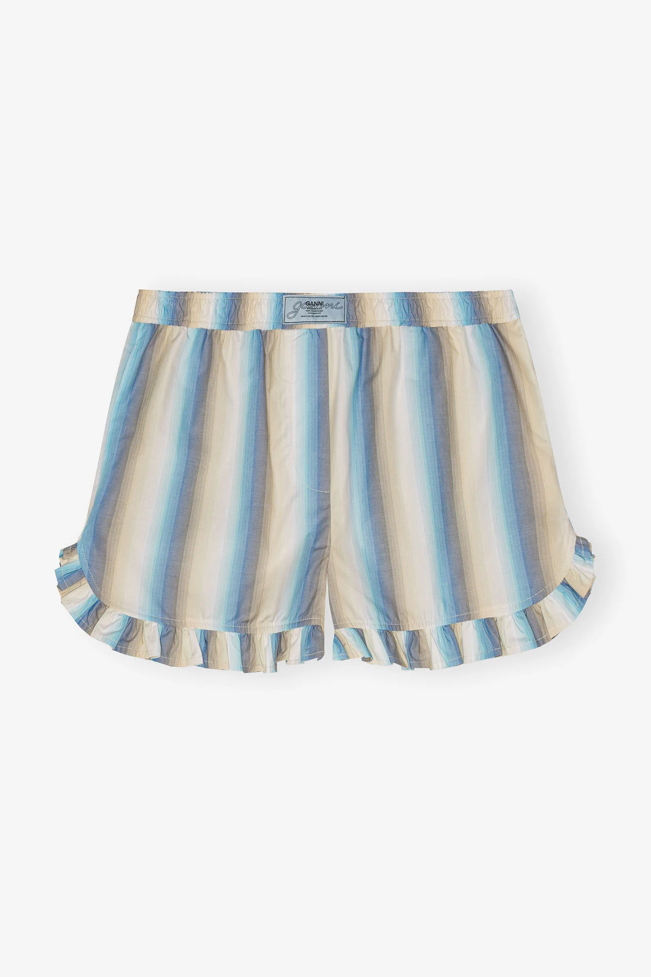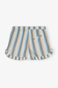 These shorts feature a multicoloured ombre stripe pattern, a GANNI patch logo and ruffle hem detail. DETAILS - 100% organic cotton. Learn more about our materials - Multicoloured ombre stripe pattern - Elasticated waist - GANNI logo patch - Back pocket - Hem with ruffle detail Made in: Turkey Product ID: W0407 SIZE & FIT - Regular fit - Chen is 5’10” and wears a size US 4 - For personalised guidance on sizing and fit, contact our Customer Service team - here - .
