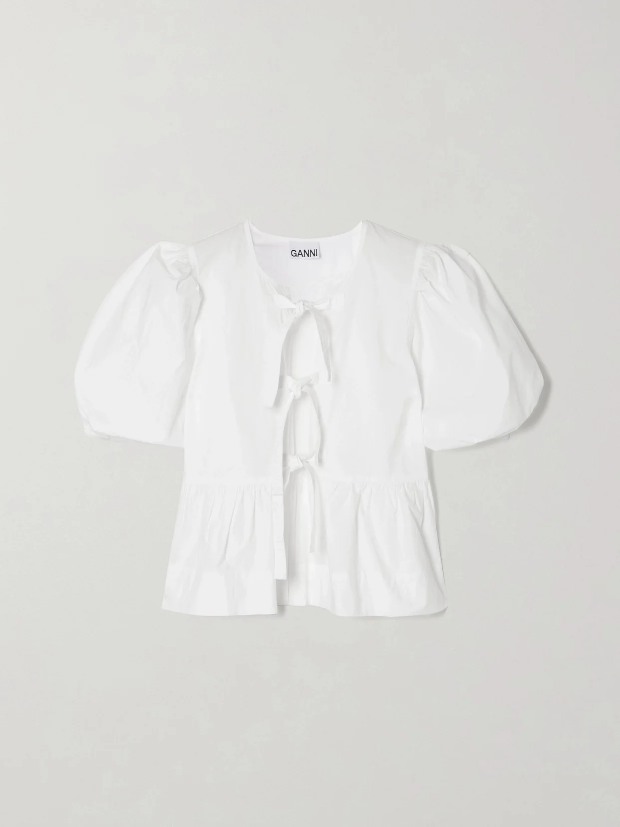 Tie-front Organic Cotton-poplin Peplum Blouse
