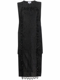organza-fringe jacquard sleeveless top Highlights - Black - Plain-weave organza - Bead detailing - Sequin detailing - Slit detailing - Round neck - Sleeveless - Below-knee length Imported Composition Outer: Recycled Polyester 50%, Polyamide 32%, Polyester 18% Lining: Recycled Polyester 100% SIZE & FIT Model measurements Height 5 ft 10 in(1.79 m) Bust/Chest 33.07 in(84 cm) Hips 35.82 in(91 cm) Waist 24.01 in(61 cm) FittingInformation This piece fits true to size. We recommend you get your regular size Cut for a slim fit Made with a mid-weight non-stretch fabric Washing instructions Hand Wash