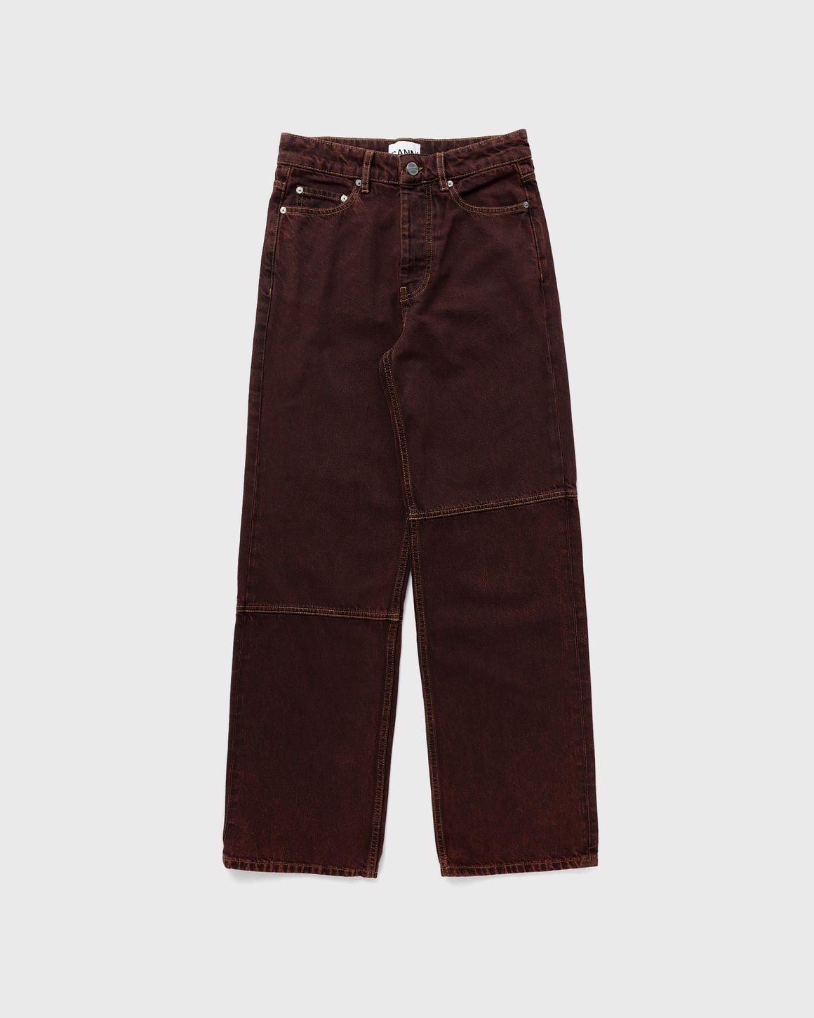 Crafted from Organic Cotton, these Ganni Overdyed Bleach Izey jeans are designed in a 5-pocket style and feature belt loops, button closure and a Ganni logo on the back pocket. The jeans have a relaxed fit with straight, loose legs and a mid-rise to low waist with a dropped crotch. - 5-pocket style - Button closure - Belt loops Ganni embraces innovation with materials such as recycled polyester and organic cotton, environmentally friendly production processes, and fair working conditions. Their transparent approach ensures stylish and socially responsible clothing. Explore sustainable Ganni products now available at BSTN! Article Number: J1341-869 Gender: Women Color: SHAVED CHOCOLATE Material: 100% Cotton