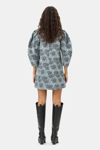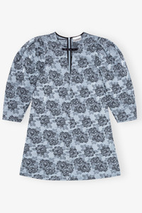 BLUE FLORAL JACQUARD A-LINE MINI DRESS