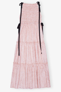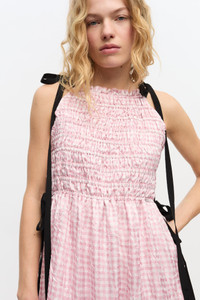 This dress features a textured check print, adjustable black ribbon ties at the shoulders and a tiered skirt. DETAILS - 100% recycled polyester. Learn more about our materials - Lining composition: 100% Cotton - Textured check print - High neckline - Adjustable black ribbon ties at the shoulders - Adjustable drawstring at waist - Tiered skirt design Made in: China Product ID: W0415 SIZE & FIT - Relaxed fit - For personalised guidance on sizing and fit, contact our Customer Service team - here - .