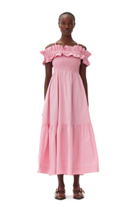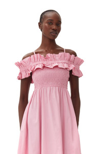 This Pink Cotton Poplin Long Smock Dress is designed for a regular fit and features a ruffled off-shoulder neckline, thin straps and a smock bodice. DETAILS - 100% organic cotton - Ruffled off-shoulder neckline - Thin straps - Smock bodice Made in: India Product ID: F9457 SIZE & FIT - Designed for a regular fit with a slightly defined waist - Fits true to size, take your normal size - Mediumweight, slightly stiff cotton poplin fabric - Tonia is 5’9” and wears a size US 4