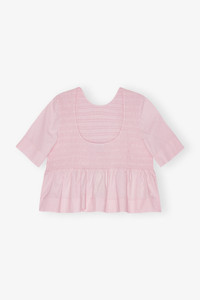 PINK COTTON POPLIN OPEN BACK SMOCK BLOUSE