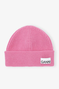 This Pink Fitted Wool Rib Knit Beanie is made from recycled wool, wool and recycled polyamide and features a GANNI logo. DETAILS - 45% wool, 35% recycled wool, 20% recycled polyamide. Learn more about our materials - GANNI logo Made in: Moldova Product ID: A5550 SIZE & FIT - Designed in a fitted/regular fit - Lightweight, soft structured rib knit - One size - Height: 19,5 cm / 7.68 inches