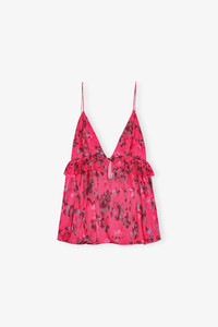 PINK FLORAL PRINTED SATIN STRAP TOP