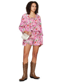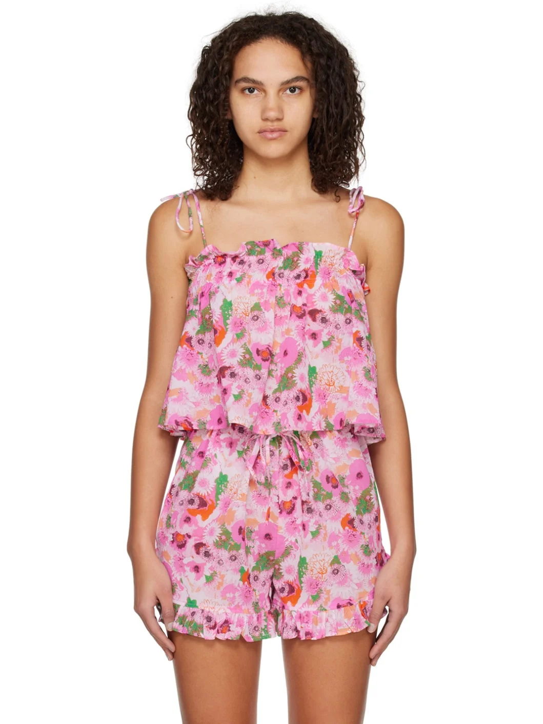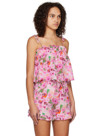 Plain-woven organic cotton tank top. Floral pattern, ruching, and gathering throughout. · Straight neck · Self-tie spaghetti straps · Self-tie fastening at back Supplier color: Sugar plum 100% organic cotton. Made in India 231144F111003