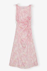 This Pink Printed Satin Gathered Dress features a round neckline with tie details and GANNI Butterfly logos, ruching along the bodice and a high slit at the front. DETAILS - 96% viscose, 4% elastane. Learn more about our materials - Lining composition: 97% Polyester 3% Elastane - Round neckline - High slit at the front - Tie detail - Ruching along the bodice - GANNI Butterfly hardware logo Made in: China Product ID: W0657 SIZE & FIT - Jenny is 5’10” and wears a size US 4