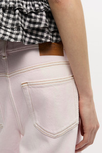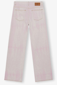 These jeans feature a pink wash, button and zip closure, 5 pockets and GANNI logo patch on back pocket. DETAILS - 100% organic cotton. Learn more about our materials - Pink washed denim - Button and zip closure - Belt loops - 5 pockets - GANNI logo patch Made in: Tunisia Product ID: J1800 SIZE & FIT - Relaxed fit - Bernie is 5’10” and wears a size 27 - For personalised guidance on sizing and fit, contact our Customer Service team - here - .