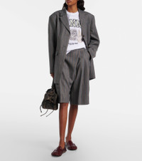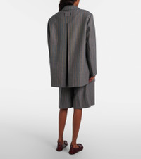 Copenhagen-based brand Ganni reshapes the meaning of Scandinavian style with its whimsy and playful approach to design. These wrap shorts feature a wide pinstripe pattern. Product Details - Material: 42% wool, 41% polyester (recycled), 17% viscose - Care instructions: dry clean - Made in Portugal - Color: grey - Designer color name: Pewter Melange - Item color: gray, brown - Lining: 57% acetate, 43% viscose - Closure: zip, hook, and button fastening - Belt loops - Pockets: slant pockets, back pockets - Item number: P01135219 Size & Fit - True to size - Non-stretchy fabric - Wide-leg - The model seen in the picture is 178cm-5'10" and wearing a size DE 34
