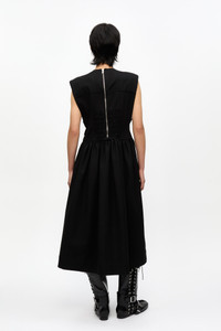 BLACK HEAVY COTTON CORSET MIDI DRESS