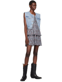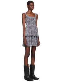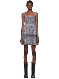 Recycled polyester crepe minidress. Pleats, smocking, ruffles, and floral pattern printed throughout. · Tiered construction · Square neck · Self-tie shoulder straps Supplier color: Phantom 100% recycled polyester. Made in India 242144F052006