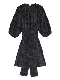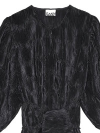 pleated puff-sleeve mini dress Highlights - Black - Pleated texture - Puff sleeves - Self-tie belt - Mini length - Round neck Imported Composition Fabric 100% Washing instructions Read Manufacturer Guidelines