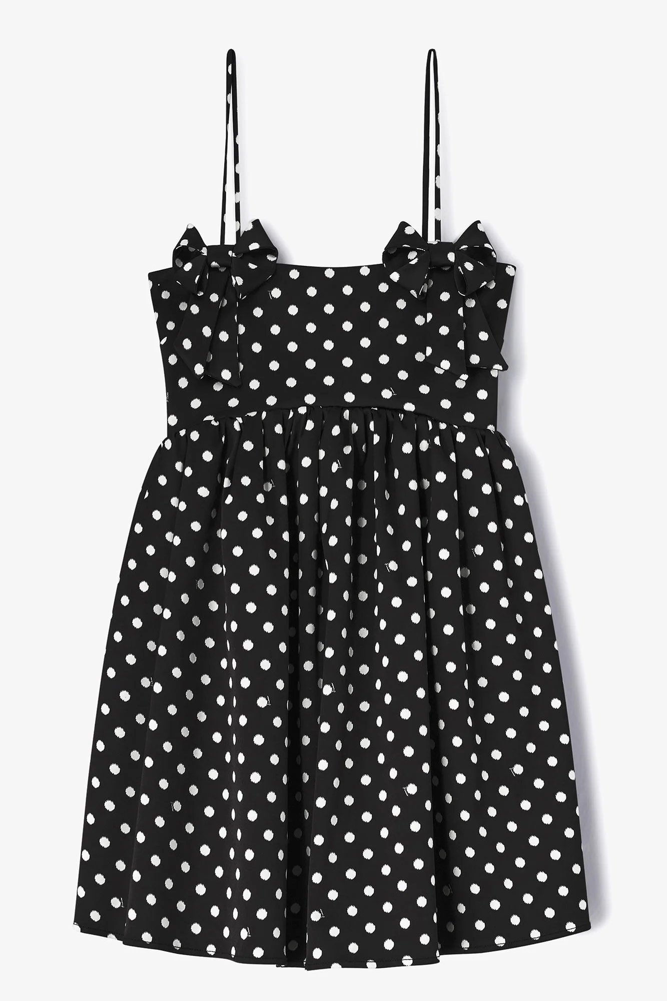 This dress feature spaghetti straps, zipper closure, an elastic back panel and a bow detail at the front. DETAILS - 91% Recycled Polyester, 9% Elastane Learn more about our materials - Lining composition: 94% Recycled Polyester, 6% Elastane - Straight neckline - Spaghetti straps - Zipper closure - Elastic back panel - Bow detail Made in: China Product ID: A1030193 SIZE & FIT - Regular fit - Mini - Lisa Lu is 5’10” and wears a size US 4