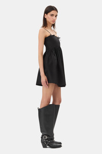 This Black Cotton Poplin Strap Dress features a straight neckline and thin straps with bow buckle details at the front. The dress has a ruched bodice at the back and a flared skirt. DETAILS - 100% organic cotton. Learn more about our materials - Straight neckline - Thin straps - Bow details - Ruched bodice at the back - Flared skirt Made in: India Product ID: W0194 SIZE & FIT - Slim fit - Paulina is 5’10” and wears a size US 4