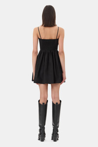 BLACK COTTON POPLIN STRAP DRESS