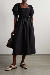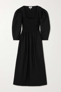 EDITORS'NOTES GANNI’s midi dress is made from breathable certified organic cotton-poplin that feels so lightweight. It has a squared neckline and smocking through the bodice for a close fit. Wash yours on a low temperature to protect the fibers. This product was created using Considered Materials. Find out more about NET SUSTAIN here. SIZE & FIT GANNI follows its own size guide, please refer to below: - EU 32 = UK 4/ US 0/ FR 34/ IT 38 - EU 34 = UK 6/ US 2/ FR 36/ IT 40 - EU 36 = UK 8/ US 4/ FR 38/ IT 42 - EU 38 = UK 10/ US 6/ FR 40/ IT 44 - EU 40 = UK 12/ US 8-10/ FR 42/ IT 46 - EU 42 = UK 14/ US 10-12/ FR 44/ IT 48 - EU 44 = UK 16/ US 14/ FR 46/ IT 50 - EU 46 = UK 18/ US 16/ FR 48/ IT 52 - EU 48 = UK 20/ US 18/ FR 50/ IT 56 - EU 50 = UK 22/ US 20/ FR 52/ IT 58 - EU 52 = UK 24/ US 22/ FR 54/ IT 60 - Fits true to size, however those who are between sizes should take the smaller size - Designed to be fitted at the bust and waist, loose at the hip - Mid-weight, non-stretchy fabric - Model is 177cm/ 5'10" and is wearing an EU 34 DETAILS & CARE - Black organic cotton-poplin - Concealed zip fastening at side - 100% organic cotton - Machine wash