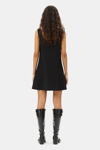 This Black Bonded Crepe Mini Dress features a deep square neckline, a front button closure, and front flap pockets. DETAILS - 100% recycled polyester. Learn more about our materials - Lining composition: 100% Recycled Polyester - Deep square neckline - Sleeveless - Button closure at the front - Front flap pockets - GANNI Butterfly buttons Made in: China Product ID: W0187 SIZE & FIT - Regular fit - Zoey is 5’10” and wears a size S