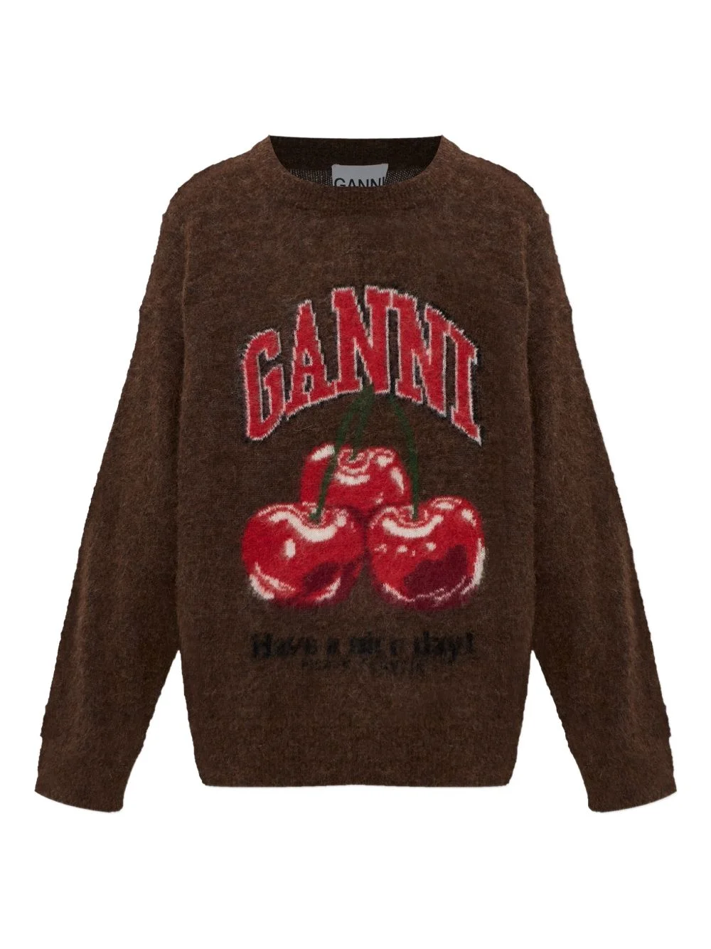 cherry-graphic sweater Highlights - Brown - Graphic print - Round neck - Long sleeves Imported Composition Alpaca 50%, Polyamide 28%, Wool 22% Washing instructions Read Manufacturer Guidelines