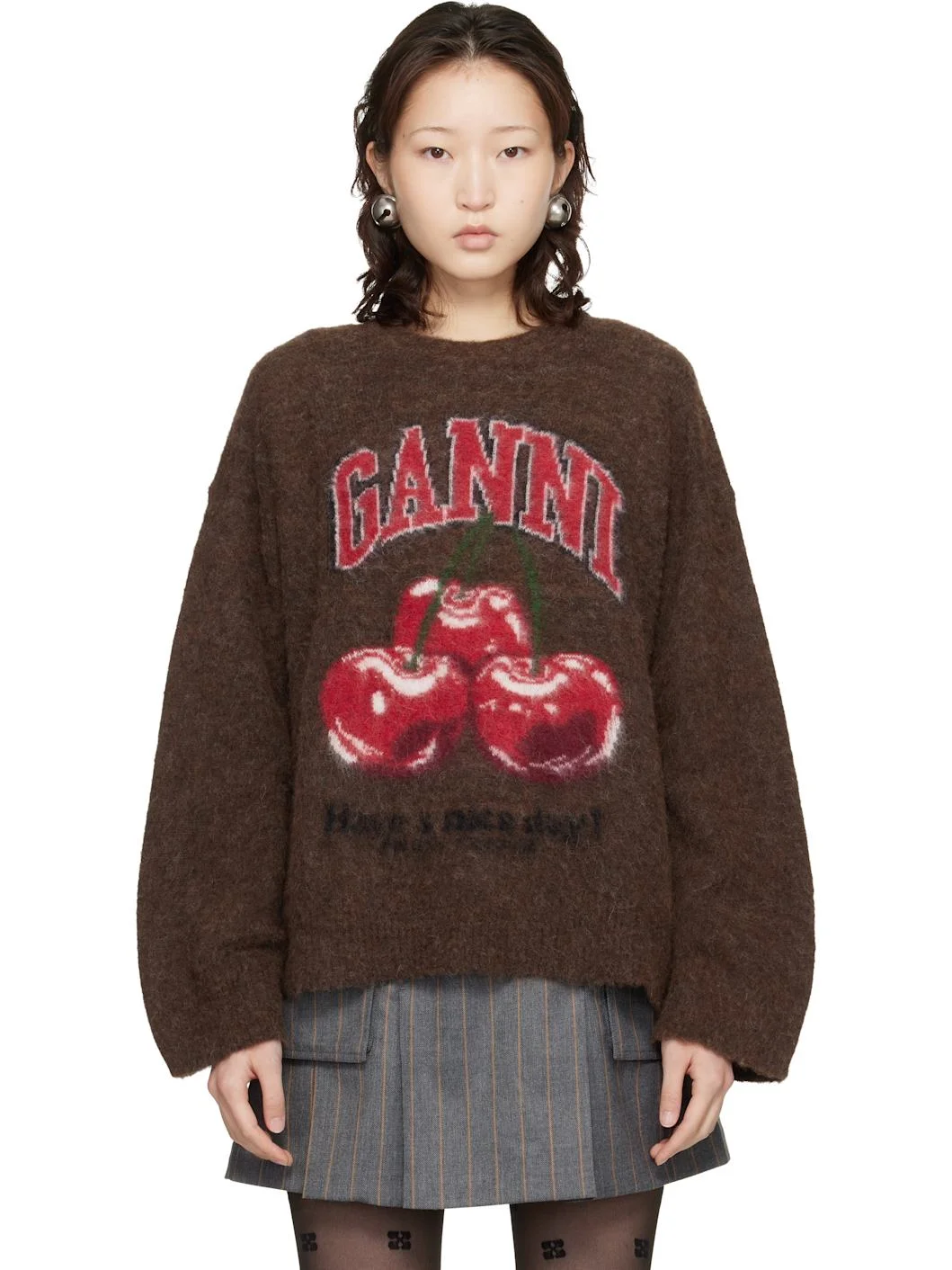 Brown Brushed Alpaca Graphic Oversized Sweater