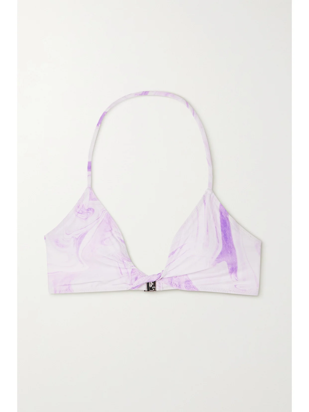 EXCLUSIVE AT NET-A-PORTER. GANNI's bikini top is patterned with marbled lilac swirls to match the [coordinating briefs id1319499]. Cut from smooth stretch fabric, it has a classic triangle silhouette with slinky ties to customize the fit. Wear yours poolside with a breezy kaftan and slides.