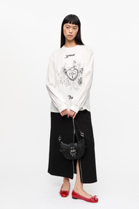 This White Re-cut Heavy Long Sleeve T-shirt features a crew neck, long sleeves and a graphic GANNI print. DETAILS - 50% organic cotton, 50% recycled cotton. Learn more about our materials - Crew neck - Long sleeves - Graphic print Made in: Portugal Product ID: T4139 SIZE & FIT - Designed for a relaxed fit. Close fit over the shoulders - Take your normal size to achieve the model's look, those in between sizes or with a smaller frame might consider taking a size down for a closer fit - Relaxed fit - Cara is 5’9” and wears a size S