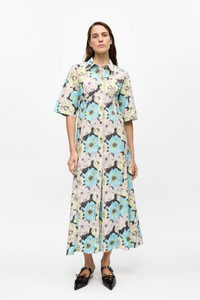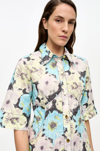 FLORAL PRINTED COTTON LONG SHIRT DRESS