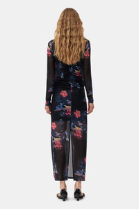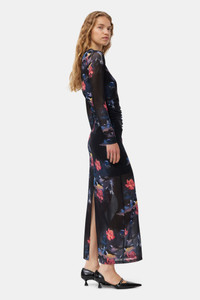 This Printed Mesh O-neck Ruched Long Dress is made from recycled nylon and spandex. The dress is designed for a form-fitting silhouette and features a round neckline, long sleeves, a high slit at the back, graphic print, lining slip dress and ruching at the front, back and sides. DETAILS - 91% recycled nylon, 9% spandex. Learn more about our materials - Lining composition: 100% Recycled Polyamide - Sheer - Round neckline - Long sleeves - High slit at the back - Graphic print - Lining slip dress - Ruching at the front, back and sides Made in: China Product ID: T3737 SIZE & FIT - Designed for a form-fitting silhouette, tight throughout - Fits true to size, take your normal size - Lightweight, stretchy fabric - Sabine is 5’10” and wears a size US 4
