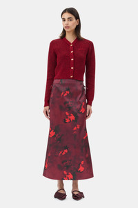This Red Printed Satin Maxi Skirt features a zip closure at the front and two drawstring ties at the waist. DETAILS - 91% recycled polyester, 9% elastane. Learn more about our materials - Zip closure at the front Made in: China Product ID: W0012 SIZE & FIT - Regular fit - Noor is 5’11” and wears a size US 4