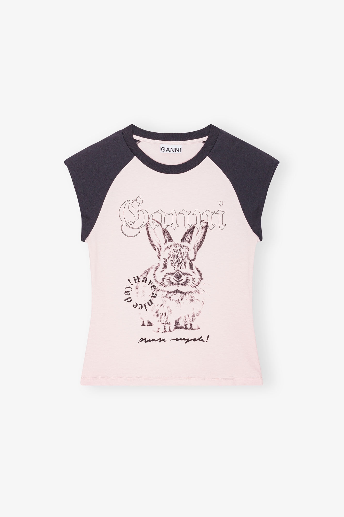 This Pink Basic Jersey Bunny T-shirt features a round neckline, short sleeves, a graphic GANNI motif and a GANNI logo. DETAILS - 100% organic cotton. Learn more about our materials - Round neckline - Short sleeves - Graphic GANNI print - GANNI logo Made in: Portugal Product ID: T4159 SIZE & FIT - Denise is 5’9” and wears a size S