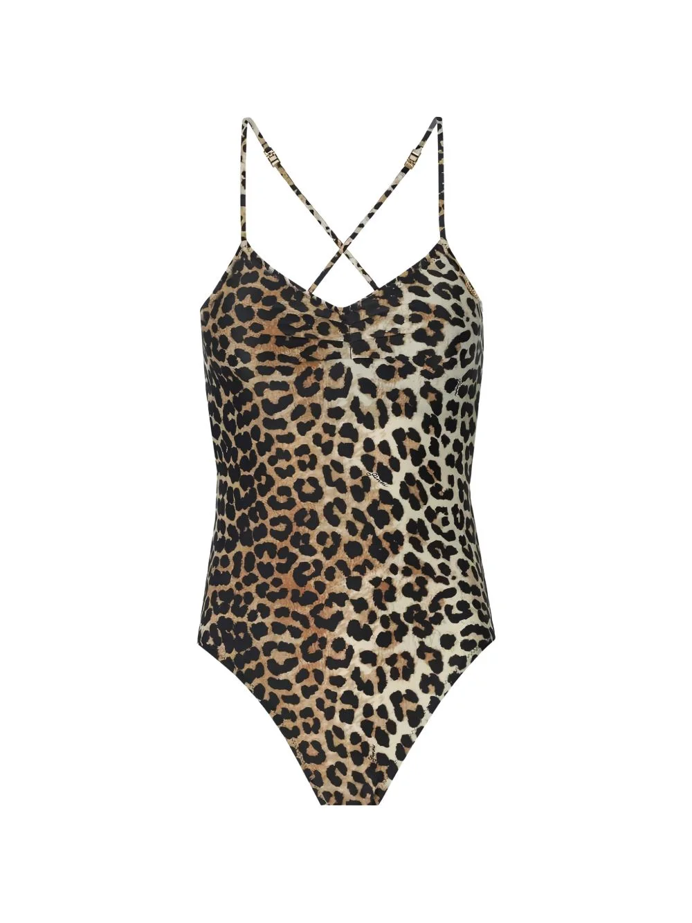 printed V-neck swimsuit Highlights - Beige - Animal print - V-neck - Spaghetti straps - Criss-cross straps - Sleeveless - Be mindful to try on swimwear over your own garments. Imported Composition Polyamide 78%, Spandex/Elastane 22% Washing instructions Read Manufacturer Guidelines