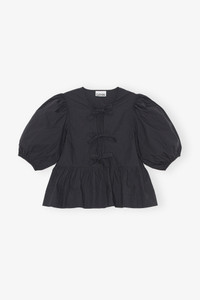This Cotton Poplin Peplum Tie Blouse is made from certified organic cotton. The blouse is designed for a relaxed fit and features an open round neckline with tie closures and signature puff sleeves with elastic edges. DETAILS - 100% organic cotton. Learn more about our materials - Tie closures at the front - Puff sleeves Made in: India Product ID: F7364 SIZE & FIT - Designed for a relaxed fit - Take your normal size to achieve the model's look, those in between sizes or with a smaller frame might consider taking a size down for a closer fit - Slightly stiff, lightweight cotton poplin fabric - Zoey is 5’10” and wears a size US 4 - Vigga is 5’9” and wears a size US 4