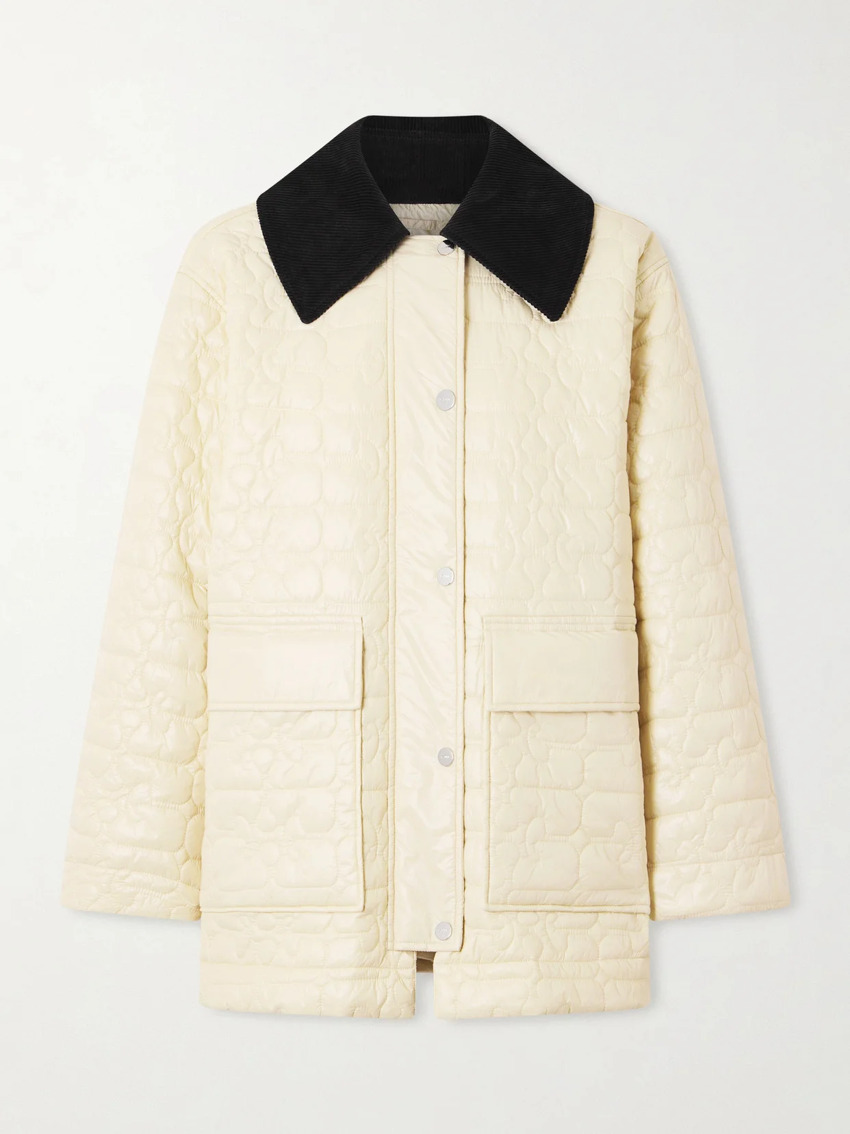 Quilted Padded Corduroy-trimmed Shell Jacket